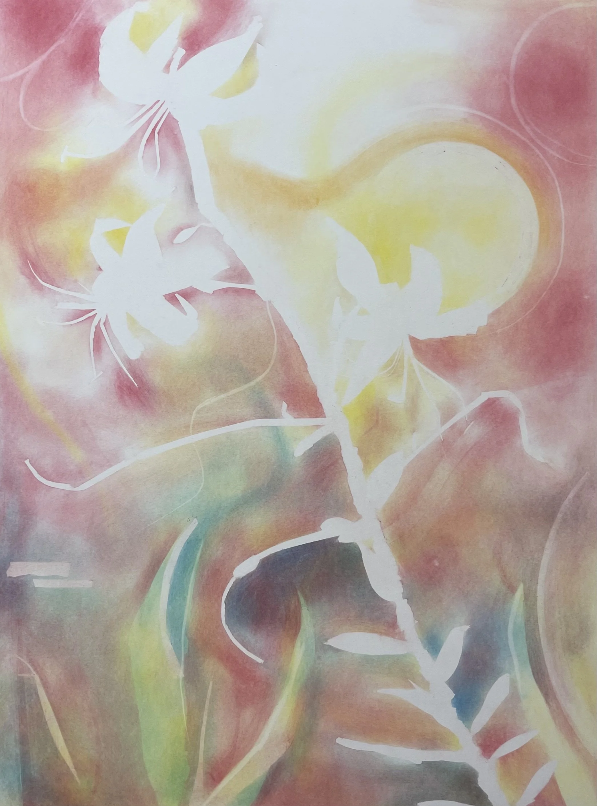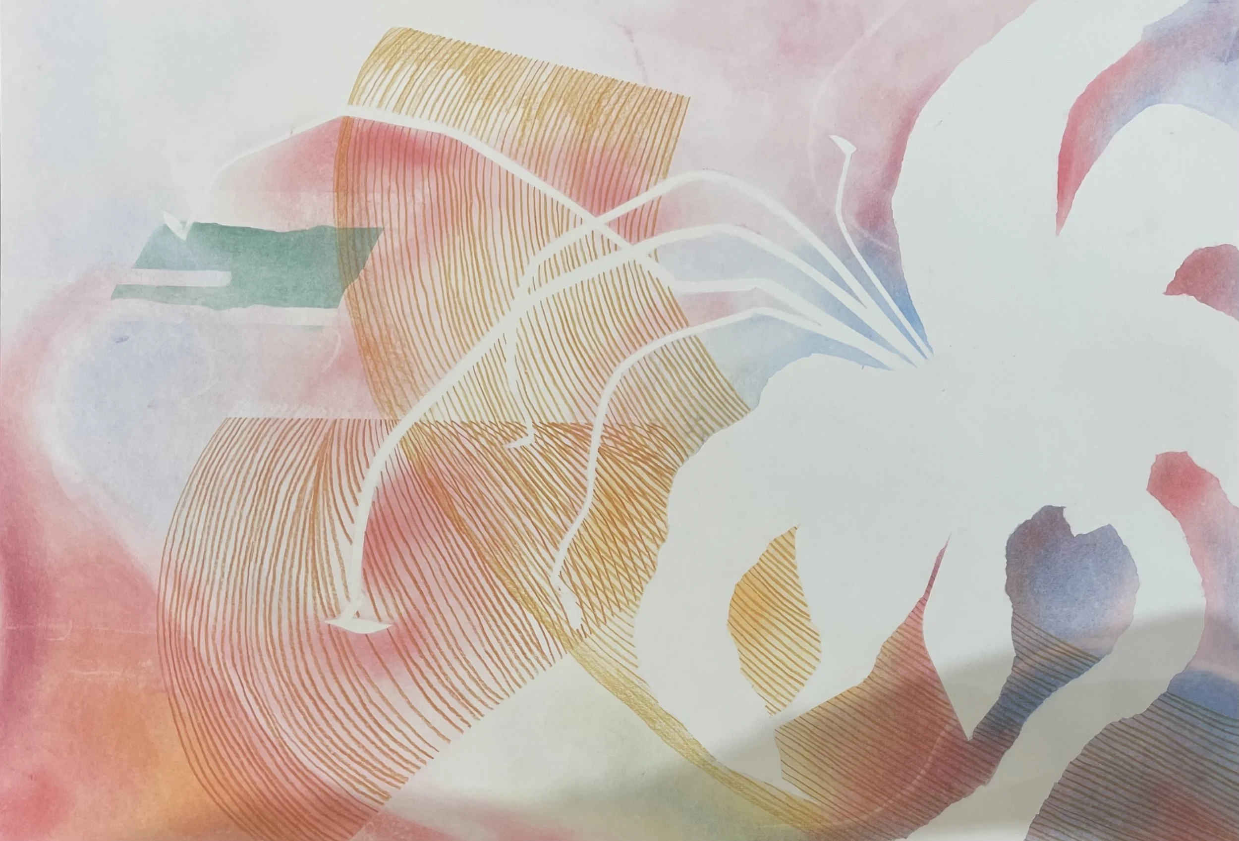 At the Anderson Ranch Art Center, I had the opportunity to explore my interest in the absent mark. What does it mean to mold something beautiful without touching it at all? I am playing with a dense atmospheric color and a flat outline of a form where tension is born out of the negative space between the forms and the atmospheric world they live in. The forms are distinctly invisible, calling all the more attention to them. I hoped to find an answer about what happens when a beautiful thing ceases to be visible.
