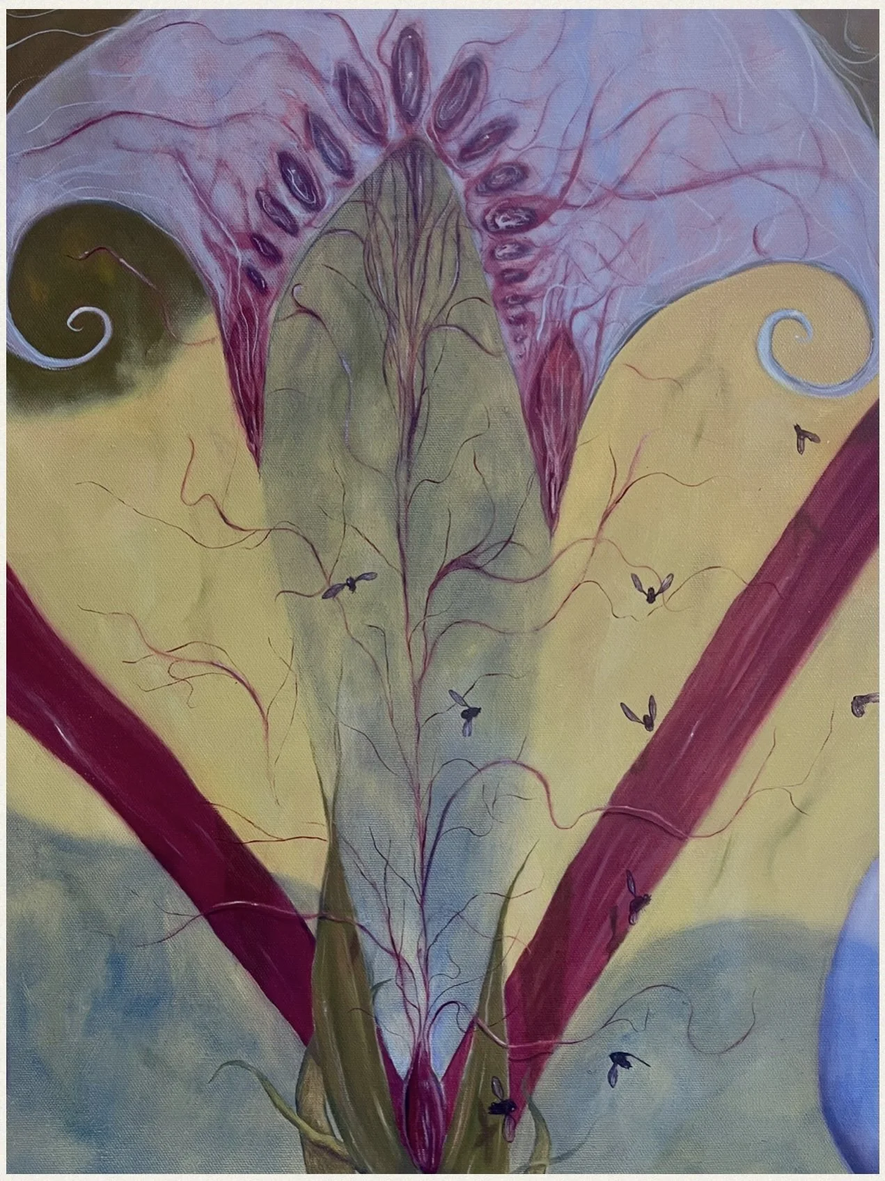 The Crevice That Carries Your Teeth, Oil on Canvas, 2025. 16”x 24”